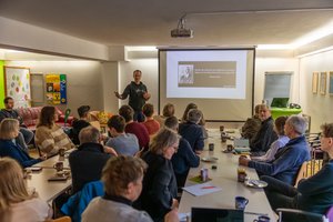 Mit diesem Eingangsstatement führte uns Philipp Achenbach am Samstag, 7. Februar, beim mit über 30 Menschen gut besuchten GRÜNfutter in den komplexen Bereich verantwortungsbewusster Geldeinlagen ein. Unterhaltsam und kompetent beschrieb er das Agieren der Banken und Sparkassen bei der Finanzvorsorge. Er zeigte durch persönliche Erlebnisse aus der Finanzbranche auf, wie in der klassischen Beratung und in dem täglichen Gebaren der großen Finanzakteure das Thema Nachhaltigkeit allenfalls als Feigenblatt genutzt wird. Eindrücklich schilderte er an Beispielen die Auswirkungen „klassischer“, oft fossiler Investitionen und des Rohstoffabbaus.