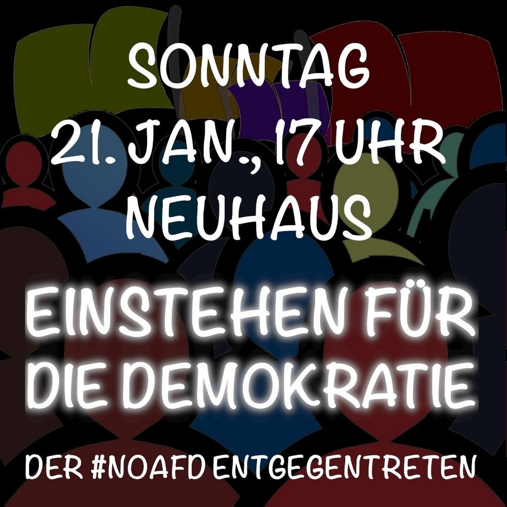 Am Tag darauf werden wir ab 17 Uhr in Neuhaus (Sporthalle Neuhaus, Am Moorgarten 6, 19273 Amt Neuhaus) gemeinsam mit Demokrat*innen aus dem Amt und dem Landkreis vor einer Veranstaltung der AfD-Fraktion demonstrieren. Die AfD hat sich bislang nicht von der „Remigration“ distanziert, deren Lüneburger Kreisverband postet in den sozialen Medien weiter entsprechende Slogans.