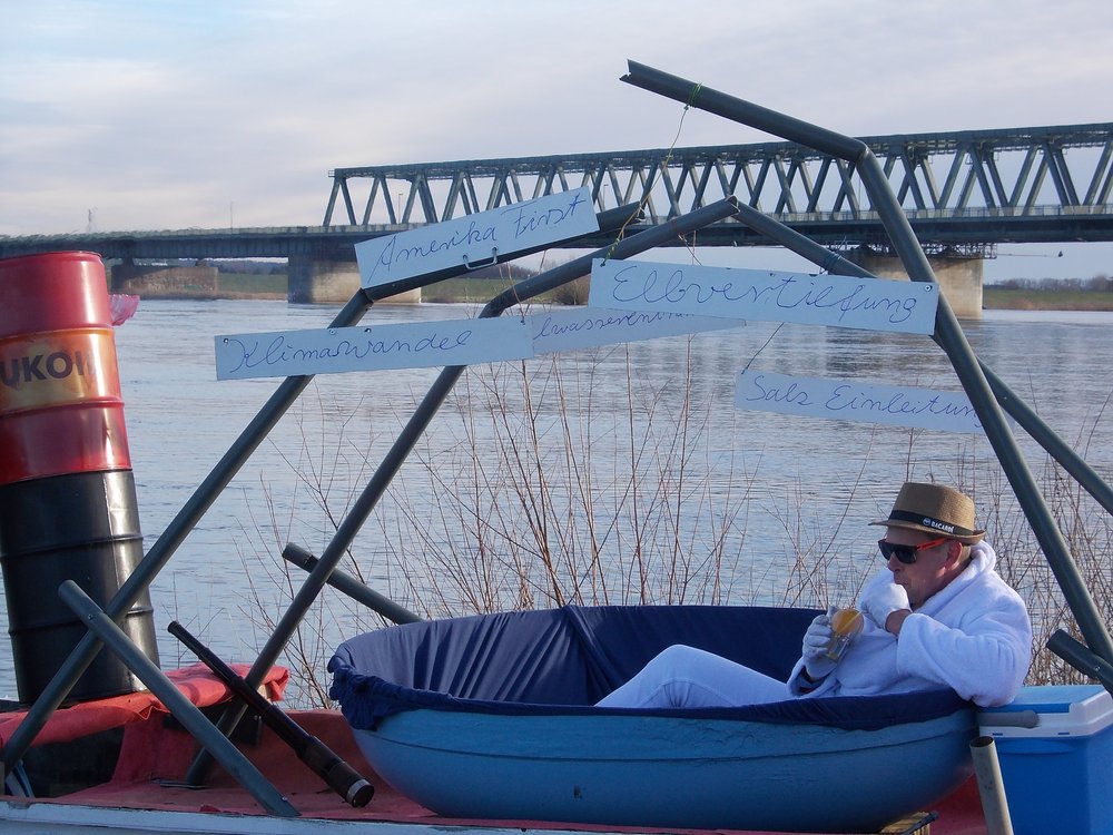 Traditionell reisen namhafte Hohnstorfer Expert*innen in einem extra für diesen Zweck vom letzten Elbfischer Ekkehard Panz mit Thomas Lohmann angefertigten Gefährt an, um ihre Forschungsergebnisse nicht ohne politischen Seitenhieb zu verkünden. Das zum Kreuzfahrtschiff mit Swimmingpool umfunktionierte Boot legte unter Schweröldampf an und wies auf die Gefahren der Salzeinleitung und der Kühlwasserentnahme aus Flüssen hin. Klimawandel und die negativen Auswirkungen auf die Fischbestände im Fanggebiet um Hohnstorf durch die Elbvertiefung standen ebenso im Fokus.