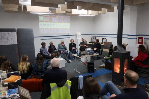 Wie sehen die Solarprojekte unserer Zukunft für eine Energiewende ohne Verlust von wertvollen Metallen und Förderung von Biodiversität in Lüchow-Dannenberg aus? Diese Frage haben am 31.01.2023 sechs Masterstudierende des lokalen Cradle-to-Cradle Solarprojekts “Solardarity” der Leuphana Universität Lüneburg zusammen mit der Bundestagsabgeordneten Dr. Julia Verlinden, der Landrätin Dagmar Schulz des Landkreises Lüchow-Dannenberg und weiteren Lokalakteuren diskutiert. Etwa 40 interessierte Personen haben die Veranstaltung im Museum Zukunft mit dem Titel „Solar grüngedacht – Wir bringen Cradle-to-Cradle aufs Dach“ besucht und hatten auch nach der Vorstellung des Geschäftsmodells von Solardarity die Möglichkeit, Fragen zur Idee (wie z. B. Finanzierungsmöglichkeiten oder Recycling von PV-Modulen) zu stellen.