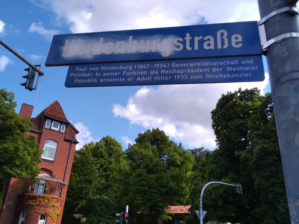„Umbenennungsgeschichte“ der Hindenburgstraße (früher Gartenstraße) ist ein Beispiel dafür,