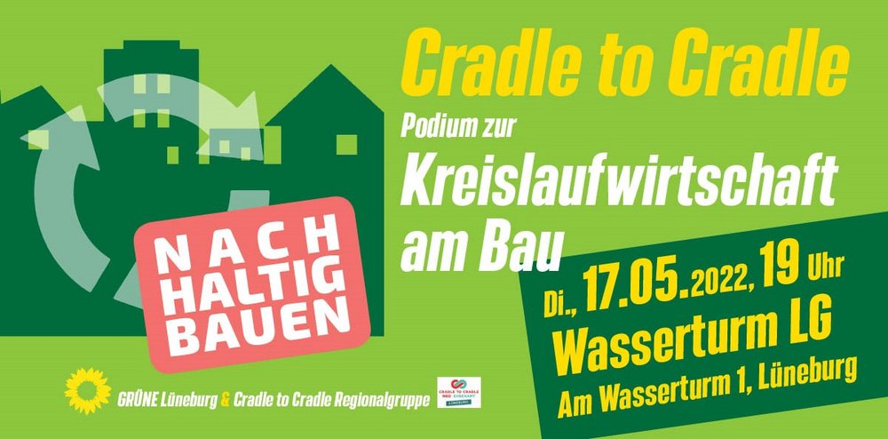 Die Veranstaltungsreihe „Nachhaltig Bauen: Cradle to Cradle in Lüneburg“ geht in die nächste Runde und knüpft damit an die sehr erfolgreiche Auftaktveranstaltung im November 2021 an. Diskutiert wurde damals über das Spannungsfeld von wissenschaftlichem Anspruch und der praktischen Anwendbarkeit von Konzepten wie Cradle to Cradle (C2C).