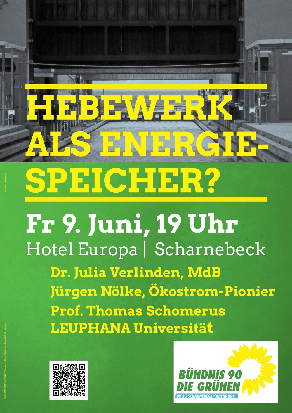 Die Vorträge und die anschließende Diskussion im Scharnebecker „Hotel Europa“ waren geprägt durch die unterschiedlichen Sichtweisen eines Professors für öffentliches Recht, insbesondere Energie-und Umweltrecht, eines Elektromeisters mit langer Erfahrung im Ökostrombereich und eines Physikers, der auch zu diesem Thema geforscht hatte. Prof. Schomerus berichtet über seine abgeschlossenen Untersuchungen zu dem bestehenden Schiffshebewerks und die sich daraus ergebenden Möglichkeiten und wagte einen Ausblick auf die deutlich ergiebigeren Möglichkeiten für die geplante große Schleuse. Jürgen Bölke arbeitet als Elektromeister in Dahlenburg, war auch an den Untersuchungen der Leuphana Universität beteiligt und konnte viele praxisbezogene Hinweise zu diesem Thema geben. Heinz Bohn berichtete über seine Untersuchungen zum Thema "Schiffshebewerk als Pumpspeicher". Er hat ein Konzept für den Bau und Betrieb dieser Anlagen entwickelt, dass von seinem Arbeitgeber zum Patent angemeldet wurde. Dr. Julia Verlinden berichtete über den Stand der politischen Entscheidungsfindung.