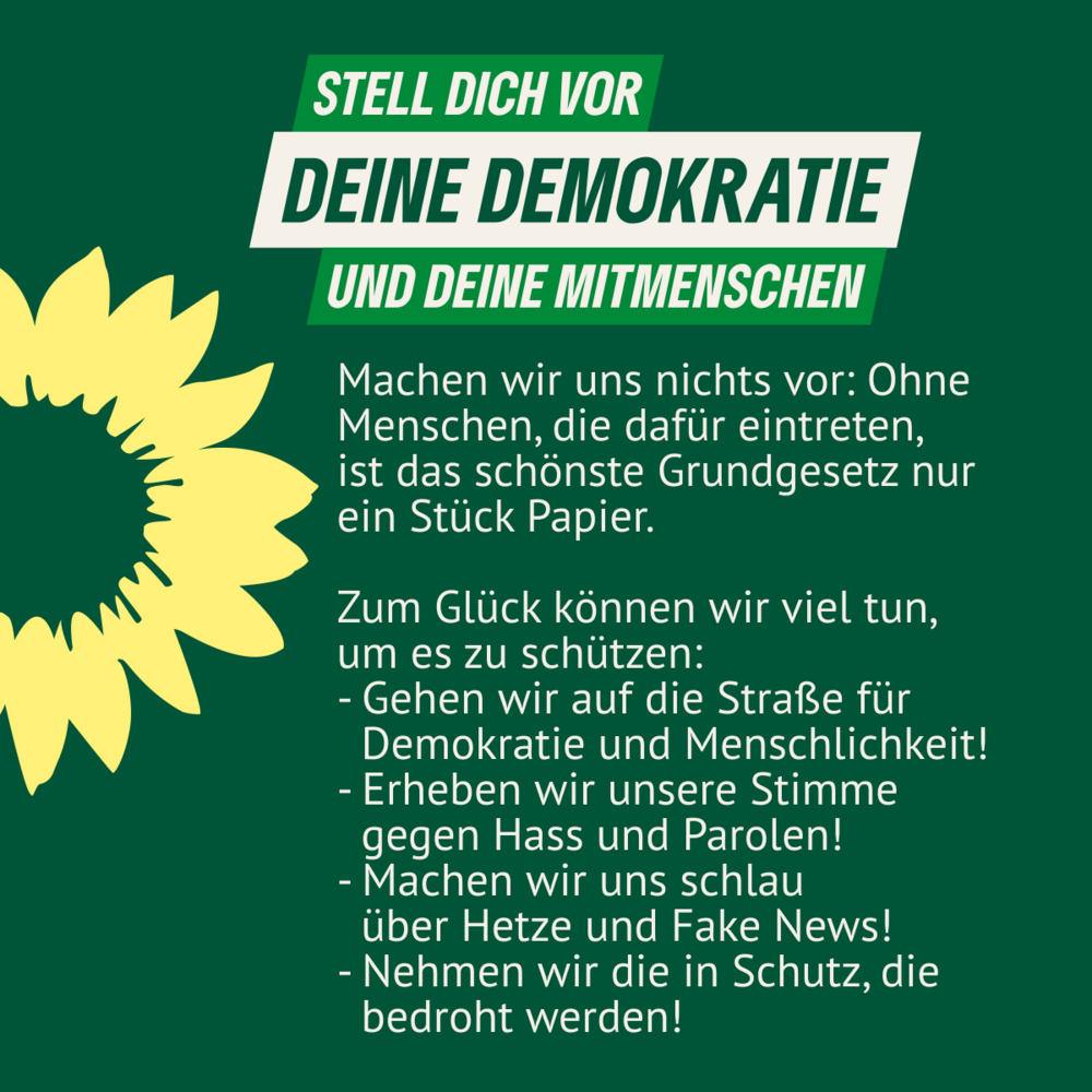 Dabei träumen wir nicht einmal, die 10 bis 15% der wahlberechtigten Deutschen mit rechtsextremen Weltbild kurzfristig zu überzeugten Demokrat*innen zu machen. Aber jenen rund 35%, die bei Landtagswahlen nicht von ihrem Wahlrecht Gebrauch machen, muss klar sein, dass sie zum Erstarken des Faschismus beitragen. Sie sollten wir auch langfristig an die Wahlurne und zu einer Stimme für die demokratischen Parteien bekommen. Denn die Verteidigung der Demokratie ist kein Event, sondern ein Dauerlauf.