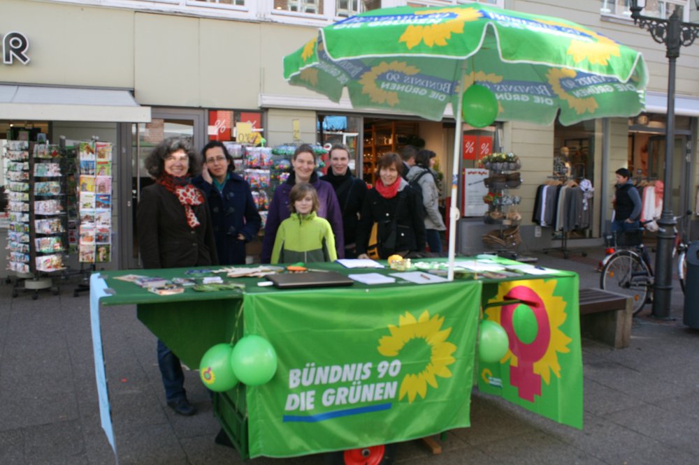 Im regen Treiben der Großen Bäckerstraße des Samstagvormittag, sammelte die Grüne OB-Kandidatin Claudia Schmidt und ihre grüne Ratskollegin Jule Grunau gemeinsam mit Hebammen aus der Region Unterschriften für die Petition „Rettet unsere Hebammen“. Die Hebammen Elisabeth Prado, Ulrike Mausolf,Andrea Schwarzer,Vera Krause, Iris Labatz und Katrin Schröder kämpfen für eine bessere Situation der Hebammen. „Seit Jahren bremst die Politik die Hebammen aus“, sagt Frau Mausolf, Beleghebamme in Winsen. Im Zentrum der Kritik steht die hohe Haftpflichtversicherung für Hebammen, die im Sommer diesen Jahres sogar auf über 5000€ ansteigen soll. Die immense Steigerung der Haftpflichtversicherung in den letzten Jahren (im Jahr 2003 beliefen sich die Kosten noch auf 1352,56€), führte bereits dazu, dass viele freiberufliche Hebammen ihren Beruf aufgaben oder kleinere Geburtshäuser schließen mussten. Dies führt u. a. dazu, dass die Anfahrtswege zu möglichen Geburtsorten für Frauen gerade im ländlichen Raum immer länger werden. Oder das die wunderbare Möglichkeit einer 1:1 Betreuung durch eine Beleghebamme, von Frauen kaum noch in Anspruch genommen werden kann, da es immer weniger Hebammen gibt, die diese Betreuungsform aufgrund der hohen Kosten anbieten. Damit wird den Frauen das Recht einer gesicherten Betreuung durch Hebammen und einer freien Entscheidung des Geburtsortes nach und nach genommen.