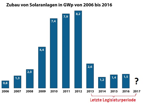 Korrektur: In einer früheren Version des Artikels hatte es geheißen, der Verein SunON betreibe Bürgersolaranlagen. Das machen allerdings nur die Zukunftsgenossen. SunOn berät und unterstützt künftige Betreiber konzeptionell. Wir bitten, den Fehler zu entschuldigen. Ergänzt wurde außerdem die Grafik "Zubau von Solaranlagen..." Kleinere Fehler wurden korrigiert.
