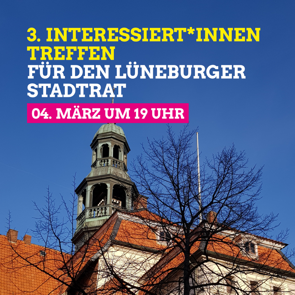 Wir laden alle zu einem dritten Interessierten-Treffen ein, dass am Donnerstag, den 04. März 2021 um 19:00 Uhr stattfinden wird. Hier könnt ihr euch über die Arbeit im Stadtrat informieren und Eure Fragen loswerden.