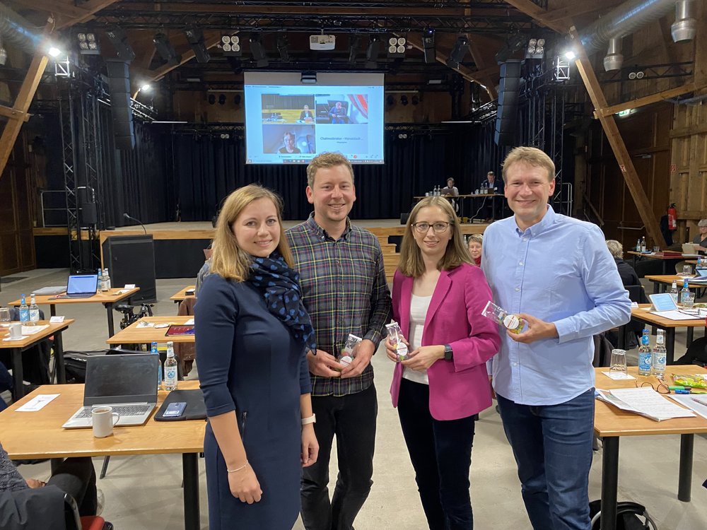 Auch auf der Ratssitzung wurde zunächst den drei neuen Lüneburger Landtagsabgeordneten Pascal Mennen, Anna Bauseneick und Philipp Meyn von der Ratsvorsitzenden Jule Grunau zum Wahlerfolg gratuliert. Als Stärkung für anstrengende Sitzungen gab‘s eine kleine Süßigkeit in Hansegiebel-Form: „Damit ihr in Hannover immer wisst, wo ihr herkommt.“