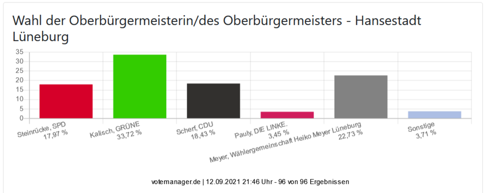Bündnis 90/Die Grünen sind mit Abstand stärkste Kraft im Stadtrat Lüneburg. Unsere Kandidatin Claudia Kalisch, geht klar als Favoritin in die Stichwahl um das Amt der Oberbürgermeister*in für Lüneburg am 26.9. - Herzlichen Glückwunsch. Auch im Kreistag Lüneburg konnten wir deutlich zulegen - sowie in vielen Stadt- und Gemeinderäten. Gratulation an alle Gewählten und auch unseren tollen HVB-Kandidatinnen Andrea in Ilmenau, Andrea in Amelinghausen und Petra in Ostheide für Eure beachtlichen Ergebnisse.