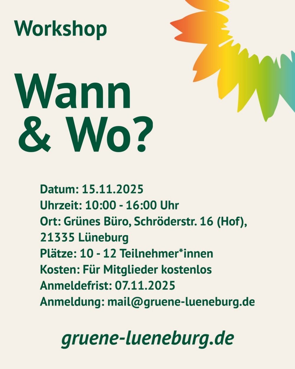 Kosten: Für Mitglieder kostenlos, Spenden erbeten, 👉 Anmeldung: mail@gruene-lueneburg.de