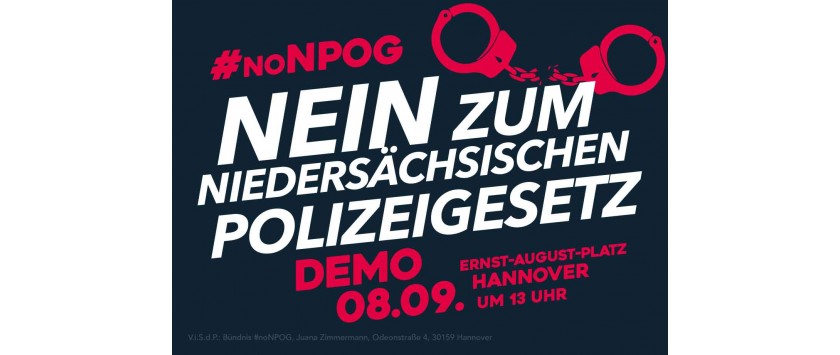 In Niedersachsen plant die rot-schwarze Große Koalition ein neues Polizeigesetz, das massive Ausweitungen der polizeilichen Befugnisse und einen Abbau demokratischer Freiheits- und Grundrechte enthält. Wir Grüne setzen auf einen starken Rechtsstaat mit gut ausgebildeter und ausgestatteter Polizei, eine Symbolpolitik oder pauschale Rechtsverschärfungen wollen wir nicht. Den Gesetzentwurf der niedersächsischen Landesregierung lehnen wir deshalb strikt mit aller Deutlichkeit ab. Gegen das neue Polizeigesetz hat sich ein breites Bündnis #noNPOG gebildet, dem der Landesverband BÜNDNIS 90/DIE GRÜNEN beigetreten ist. Wir rufen zur Teilnahme an der landesweiten Großdemonstration gegen das neue Polizeigesetz