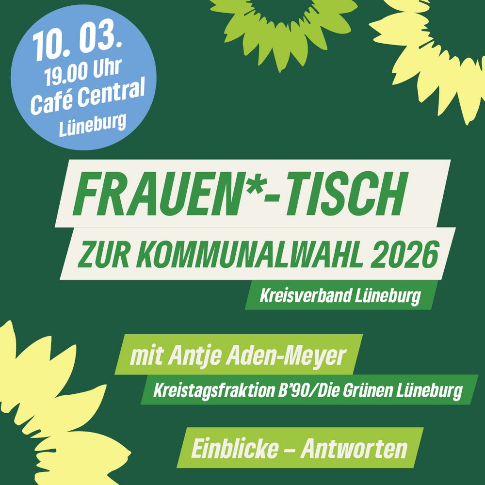 Damit genügend Plätze am FRAUEN*TISCH sind, gerne anmelden bei ines.franckenberg@gruene-lueneburg.de
