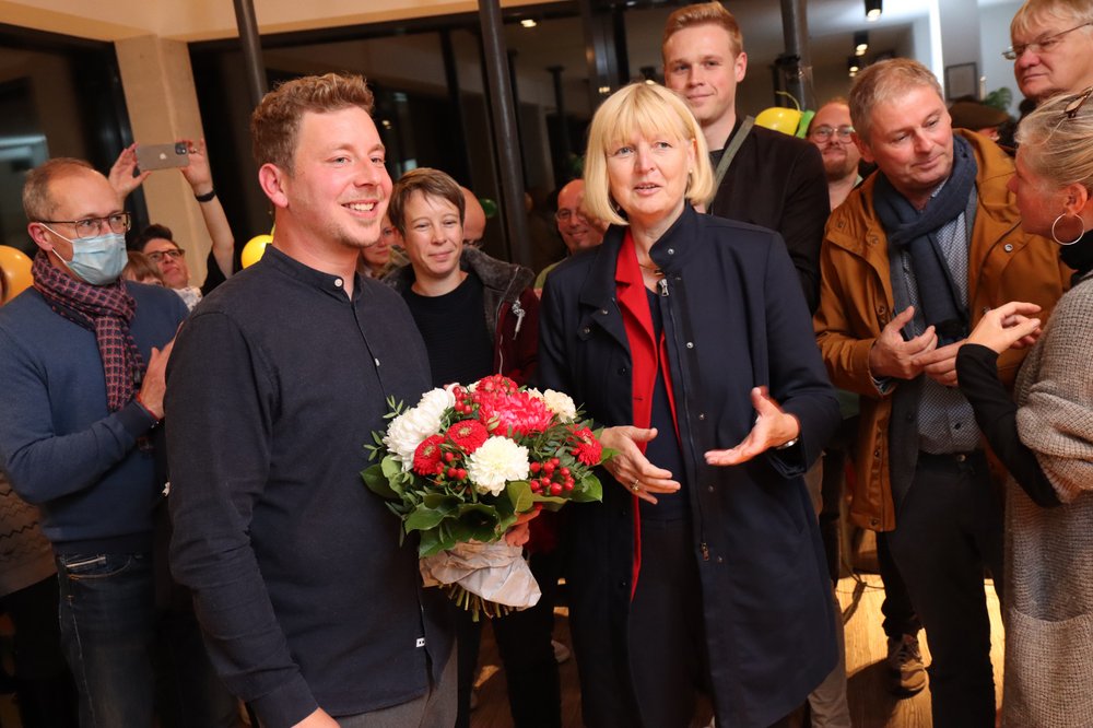 Über Stunden schauten Gastgeber*innen und Gäste immer wieder prüfend auf die beiden Leinwände oder ihre Handys, bis um 21:12 schließlich mit "Briefwahl VII" auch das letzte Wahllokal an Pascal Mennen ging und der Jubel einer Explosion gleich die Trommelfelle auf die Probe stellte. Mit nur 325 Stimmen Mehrheit vertritt damit erstmals ein Grüner Lüneburg als direkt gewählter Abgeordneter im Landtag. Er ist dort aber nicht allein.