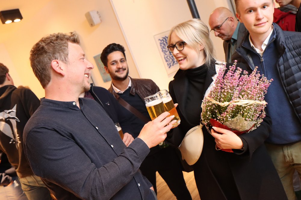 Die CDU Kandidatin Anna Bauseneick besuchte mit einer kleinen Delegation die Wahlparty ganz kurz vor Ende der Auszählung und wurde mit herzlichem Applaus begrüßt. Sie gehörte damit gleich zu den ersten Gratulantinnen. Wenig später kam auch die so knapp unterlegene SPD-Kandidatin Andrea Schröder-Ehlers, um zu gratulieren. Respekt vor so viel Größe in diesem für sie doch sehr schweren Moment. Auch sie wurde natürlich mit Applaus begrüßt, ebenso wie später FDP-Kandidatin Anna-Lena Narewski.
