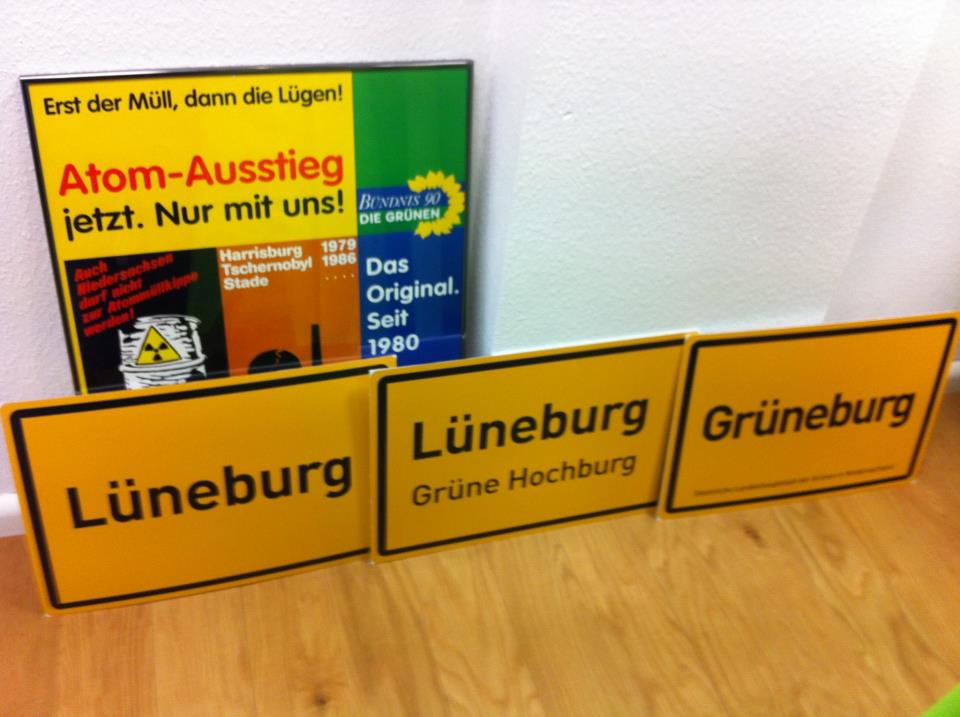 Bunte Plakate aus den letzten Jahrzehnten Grüner Politik schmückten die Wände. Vorstandsprecher Claudia Schmidt und Matthias Wiebe hatten beharrlich die Umzugpläne vorangetrieben und freuten sich bei der Eröffnung auch die Landesvorsitzende Anja Piel sowie die Bundestagsabgeordnete Brigitte Pothmer begrüßen zu können. Beide hoben das gute Abschneiden der Grünen in Lüneburg bei den letzten Wahlen hervor und beglückwünschten die Grünen vor Ort für ihre Erfolge. Pothmer überreichte schmunzelnd ein neues Ortsschild mit Aufdruck "Grüneburg". Auch Vertreterinnen des NaBu und des BUND waren anwesend und stießen mit auf die neuen Räumlichkeiten an. Sprecherin Claudia Schmidt betonte in ihrer Ansprache, dass das Büro auch als Treffpunkt für Initiativen und Verbände offen sein soll. "Die hellen Räume laden zum Diskutieren ein- und das wollen wir auch," so Schmidt. Das Büro wird auch nicht nur Anlaufstelle des Kreisverbands sein, sondern auch als Regionalbüro der örtlichen Landtagsabgeordneten Miriam Staudte fungieren. Diese scherzte: "Ich bin froh, dass der Kreisvorstand für eine solide Finanzierung der Räume gesorgt hat und keine windigen Sponsoringverträge abgeschlossen hat, zumindest ist mir nichts dergleichen bekannt." Auch Pothmer nahm in ihrer Eröffnungsrede Bundespräsident Wulff auf´s Korn. Unter den Anwesenden war auch der neue Kreisgeschäftsführer , der ab 1.Februar 2012 für die Grünen im Kreis tätig sein wird. Besetzt ist das Büro