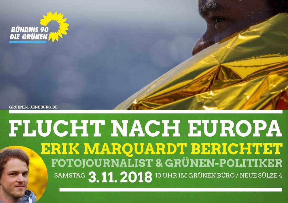 Zu diesem Thema lädt der Kreisverband der GRÜNEN Lüneburg im Rahmen seines monatlichen GRÜNFutters am Samstag, 03.11. von 10.00 bis 12.00 Uhr zu einem Vortrag des Fotografen Erik Marquardt mit anschließender Diskussion ins GRÜNE Büro im Freya-Scholing-Haus, Neue Sülze 4, 21335 Lüneburg ein.