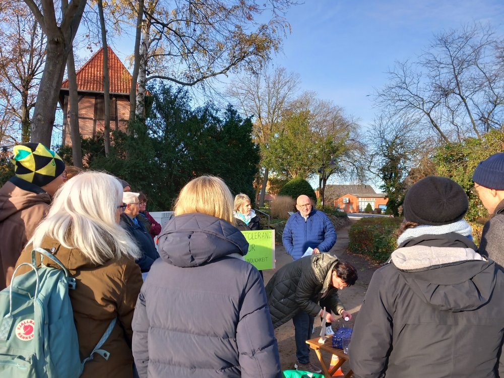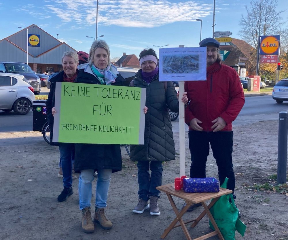 und gegen Fremdenfeindlichkeit. Etwas mehr als 30 Menschen aus Bardowick und der Region fanden sich am vergangenen Samstag mitten in Bardowick zusammen. Sie wollten zeigen, dass sie nicht einverstanden sind mit dem Hass und der Fremdenfeindlichkeit, die derzeit die öffentliche Debatte um Flucht und Vertreibung und den Pflichten, die uns als Menschen daraus erwachsen, bestimmen.