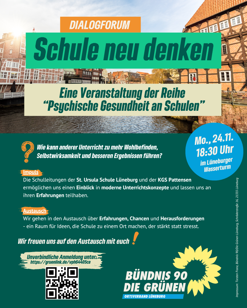 Am Montag, den 24. November 2025, um 18:30 Uhr lädt der Ortsverband BÜNDNIS 90/DIE GRÜNEN Lüneburg in den Wasserturm Lüneburg ein.
