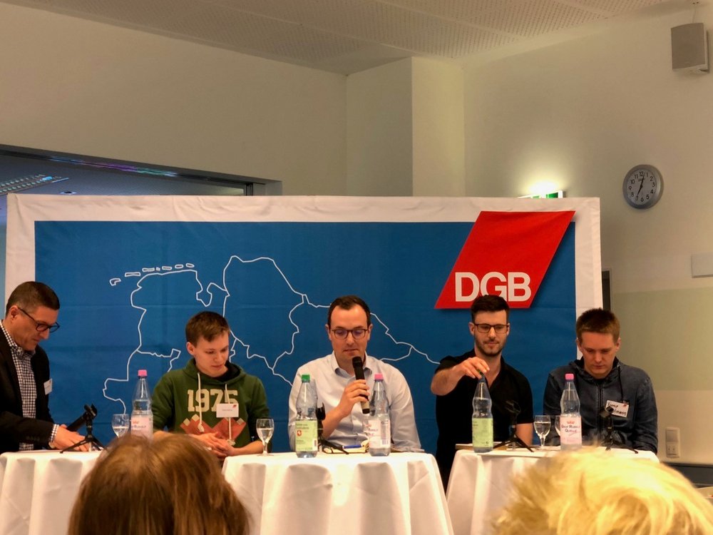 Am 06.04. auf der Frühjahrskonferenz des DGB Nordost-Niedersachsen in Walsrode hat unser Timon Dzienus, Sprecher der Grünen-Jugend Niedersachsen, auf der Podiumsdiskussion den meisten Beifall bekommen.