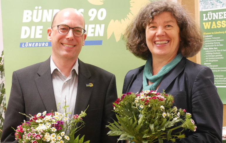 Claudia Schmidt und Oliver Kraemer wurden am Donnerstag abend von den Grünen des Kreisverbandes Lüneburg einstimmig in eine weitere Amtszeit getragen. Kreiskassierer Michael Gaus durfte nach zwei Amtszeiten nicht erneut antreten. Ihm folgt Peter Christmann aus Reppenstedt.