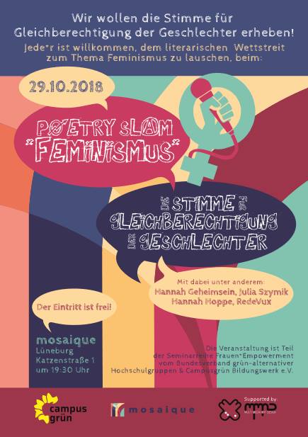 Der Bundesverband Campusgrün und Campusgrün Lüneburg präsentieren: Der Poetry Slam, der die Stimme für die Gleichberechtigung der Geschlechter erhebt!