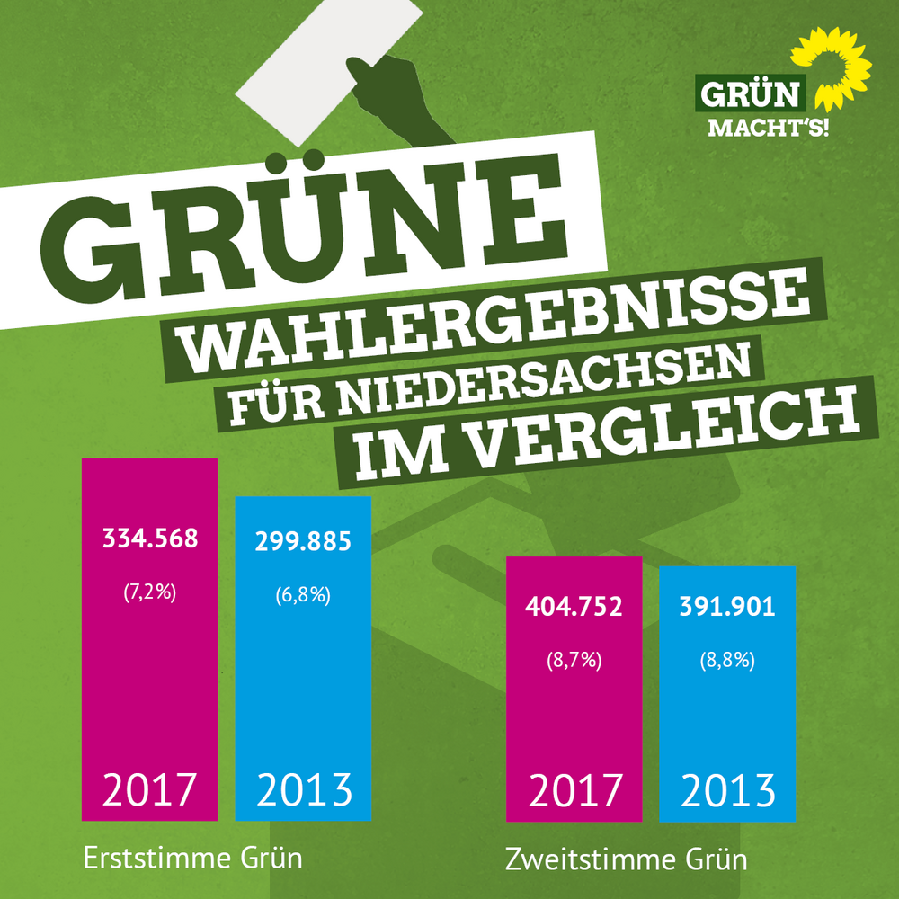 Bei der Bundestagswahl haben über 10.000 Menschen in Niedersachsen mehr ihre Stimme für Grün abgegeben als noch 2013. Das bestärkt uns in unserem Einsatz für Menschlichkeit, Umwelt und Gerechtigkeit.