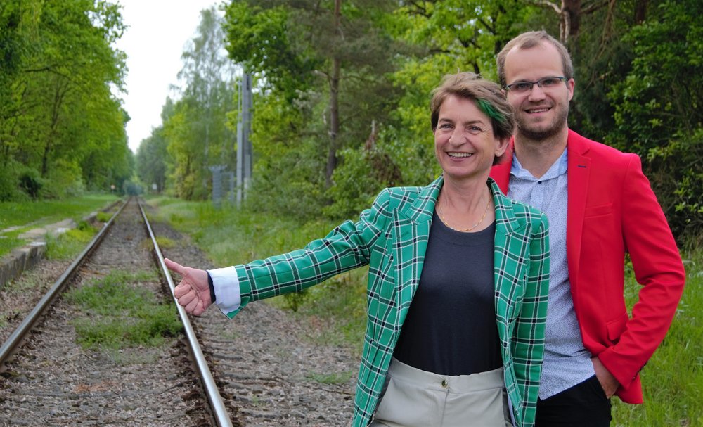 Erika Romberg, Landratskandidatin der GRÜNEN für den Landkreis Lüneburg, und Leonard Hyfing, Landratskandidat der FDP für den Landkreis Uelzen, trafen sich am Montag, 20.05.2019, am "grenznahen" Bahnübergang in Bavendorf.