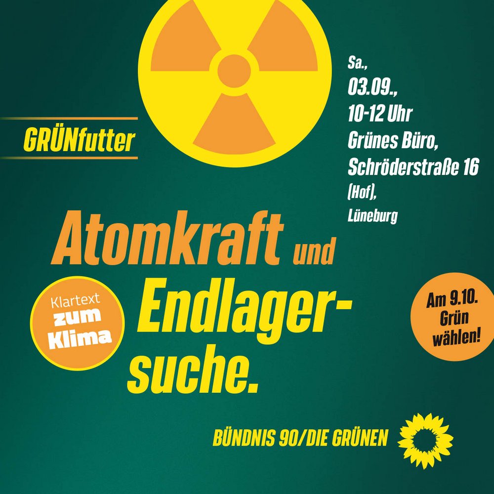 Diesmal wird Petra Kruse-Runge zum Thema Atomkraft und Endlagersuche als Referentin dabei sein. Petra engagiert sich seit vielen Jahren im "Lüneburger Aktionsbündnis gegen Atom" (LAgA) und ist aktuelle Vorsitzende vom Begleitausschuss zur Endlagersuche des Lüneburger Kreistags.