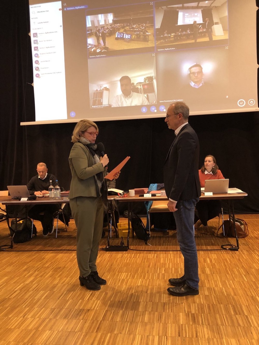 Unser neues Fraktionsmitglied Matthias Wiebe wurde in der Ratssitzung von der Oberbürgermeisterin offiziell in den Stadtrat aufgenommen. Wir freuen uns sehr über die Verstärkung, denn Matthias bringt bereits viele Jahre kommunalpolitischer Erfahrung aus Adendorf und im Kreistag mit.