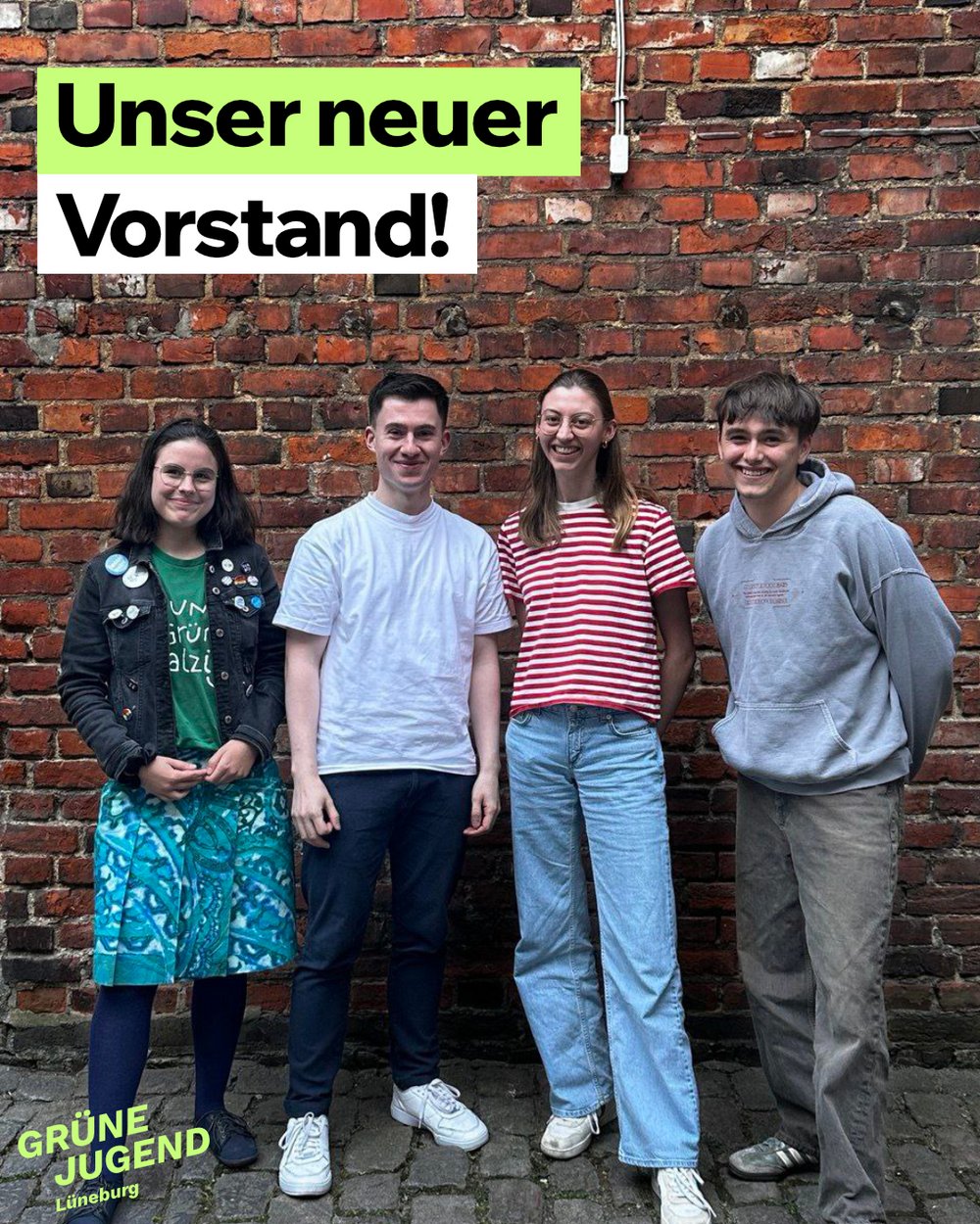 Bei unserer letzten Mitgliederversammlung am Dienstag, 13. Mai 2025 wurden Ann-Christin und Laurens zu unseren Sprecher*innen gewählt. Außerdem wird Benito als Schatzmeister und Jónina als Beisitzerin im Vorstand sein. Mit unserem neuen Vorstand startet die GJ-Lüneburg jetzt wieder richtig durch! Es gibt für einen linken Jugendverband gerade viel zu tun - Kampf gegen Rechts, Ungleichheit und Unterdrückung. Kampf für Solidarität, Feminismus, Freiheit und Klimagerechtigkeit. Die Grüne Jugend bleibt stabil!