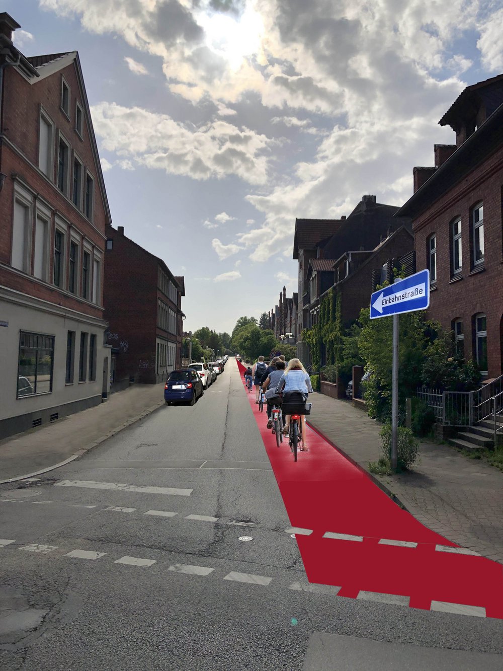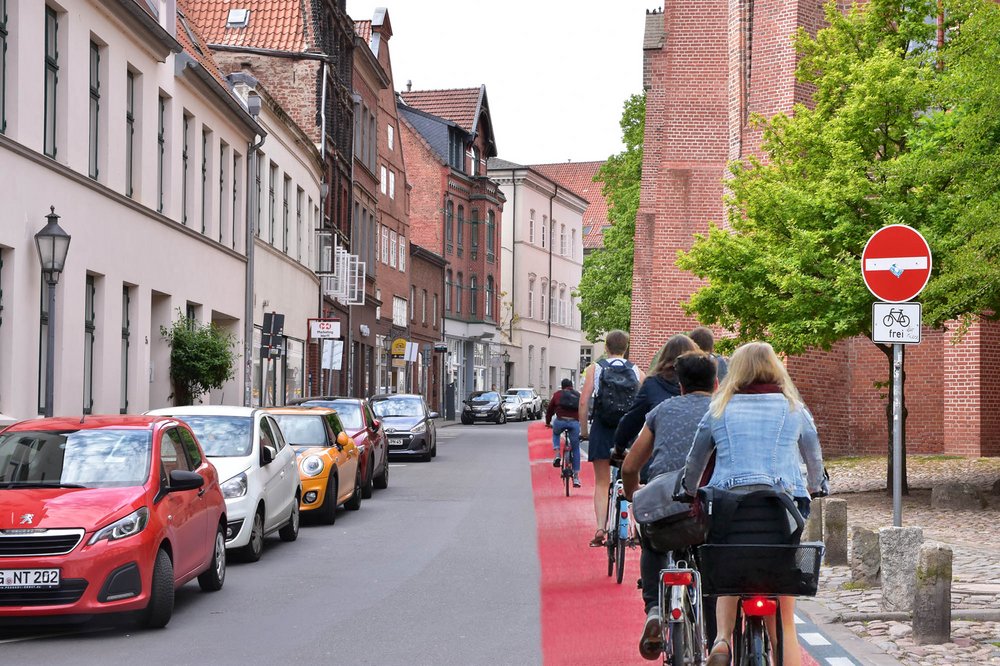 Einige Beispiele aus Lüneburg : Es hat ca. 10 Jahre gedauert bis die Lüner Straße für Fahrradfahrer entgegen der Einbahnstraße genutzt werden darf. Wer diese Variante vom Bahnhof kommend nutzt, weiß wie gefährlich sich der Slalom zwischen den parkenden Autos gestaltet. Der richtige Ansatz ist nicht konsequent zu Ende gedacht. Wer von der Dahlenburger Straße Richtung Am Sande fährt, muss die vielbefahrene Kopfsteinpflasterstraße „Bei der St. Johanniskirche“ nutzen. Zwischen Bussen und Autos bleibt ein Abstand von kaum 30cm zu Radfahrer*innen.