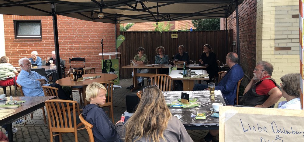 Unsere Bundestagskandidatin Julia Verlinden erläuterte die wesentlichen konkreten Schritte, die in nächster Zeit im Sinne einer wirklichen Energiewende zu gehen sind: auf mehr Energieeffizienz und Energieeinsparung (z.B. bei den Gebäuden / Neubauten) drängen, deutlich mehr Windräder und Solaranlagen (auch auf privaten Dächern) zulassen und fördern sowie für mehr Akzeptanz bei den Menschen zu werben. Sie wies auch auf die große Bedeutung der Energieerzeugung vor Ort als wichtiger regionaler Wertschöpfung-Faktor hin, denn so könne auch mehr Gewerbesteuer in die Gemeindekassen fließen, gute Chancen auch für strukturschwache Kommunen. „Bürger-Energie“ war ihr ebenso ein Anliegen, nämlich mit den Menschen vor Ort gemeinsam Erneuerbare Energie-Anlagen zu planen und mit finanzieren zu lassen, um eine reale Beteiligung zu ermöglichen.