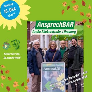 Für alle die nicht mehr, noch nicht oder schlicht gar nicht im Urlaub sind: Am kommenden Samstag sind wir wieder mit unserer AnsprechBAR in der Großen Bäckerstraße in Lüneburg ansprechbar. Dort gibt es, wie gewohnt, unsere leckeren alkoholfreien Cocktails 🍹 und Gelegenheit auf einen Schnack, z.B. mit JuliaVerlinden. Kommt vorbei! 💚🌻