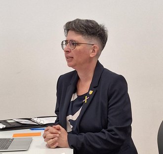 Julia B. Diehl spricht zum gemeinsamen Antrag der Gruppe Die Linke/Die PARTEI, die Fraktion Bündnis 90/Die Grünen und SPD zum Thema "Erweiterung der stationären Wohnungslosenhilfe" in der Kreistagssitzung am 12. November 2025: