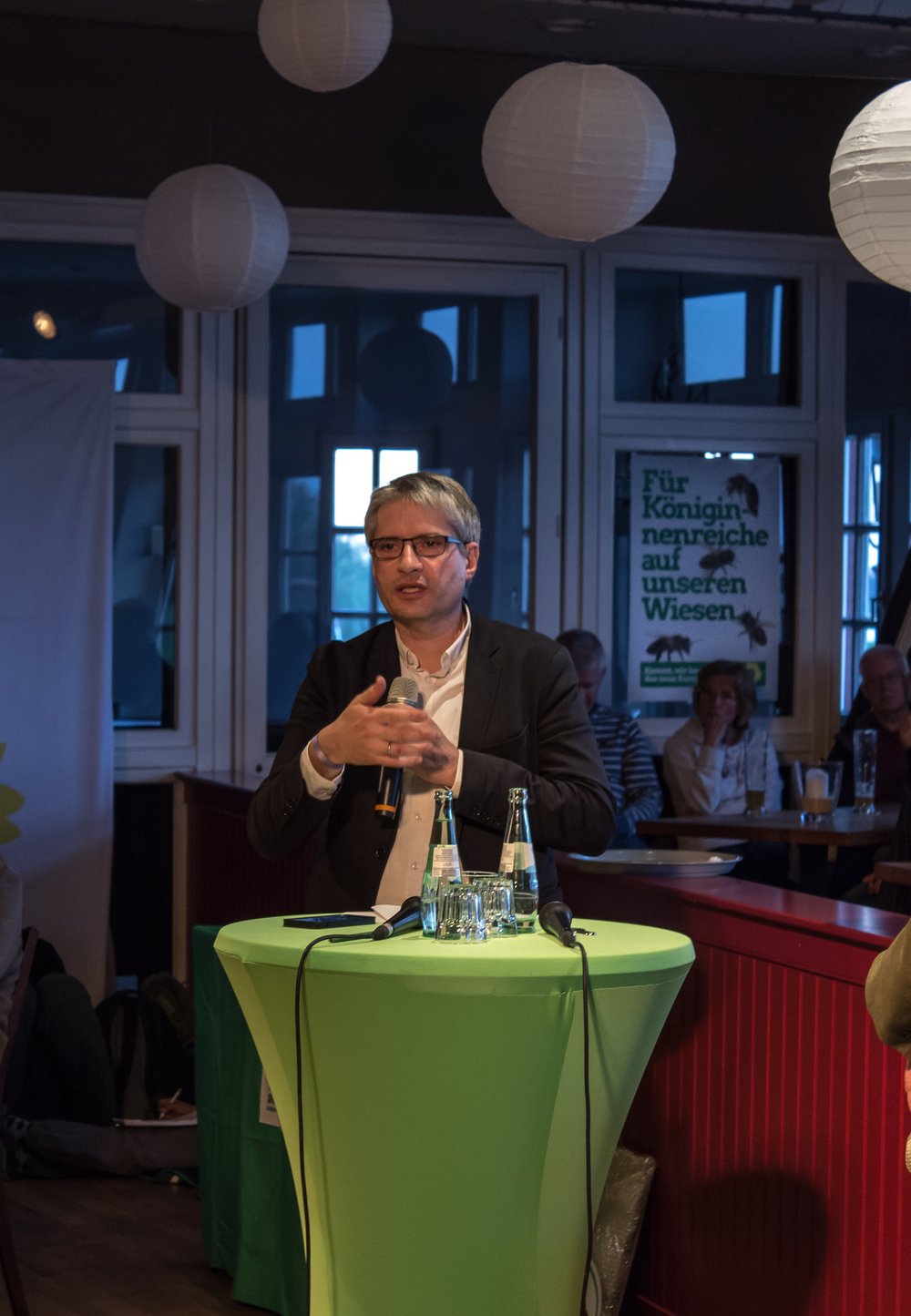 In einem rasanten Schnelldurchlauf beleuchtete Sven Giegold wichtige Themen, für die die GRÜNEN im Europäischen Parlament streiten und vor allem, was das Parlament und auch die GRÜNEN in Europa bereits erreicht haben. Er machte deutlich, dass BÜNDNIS 90/DIE GRÜNEN die pro-europäischste Partei in Deutschland ist.