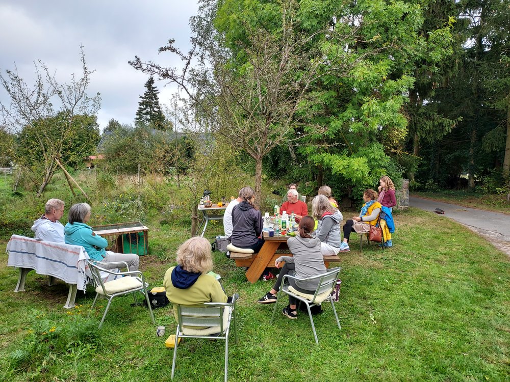 Schöne Tour mit 13 Teilnehmer*innen über 50 km von Lüneburg auf Feld- und Forstwegen sowie kleinen Straßen zunächst zum Bienenblumengarten nach Bavendorf, wo uns Eberhard Parnitzke spannend bei Kaffee, Keksen und Muffins die Bedeutung der einheimischen Wildstauden für Wildbienen und anderen Insekten erklärte und uns über das Bienenblumen-Netz informierte. Im Rahmen des Netzwerkes wird die Vermehrung und die Pflanzung von Wildstauden organisiert. Eine tolle Initiative gegen das Artensterben.