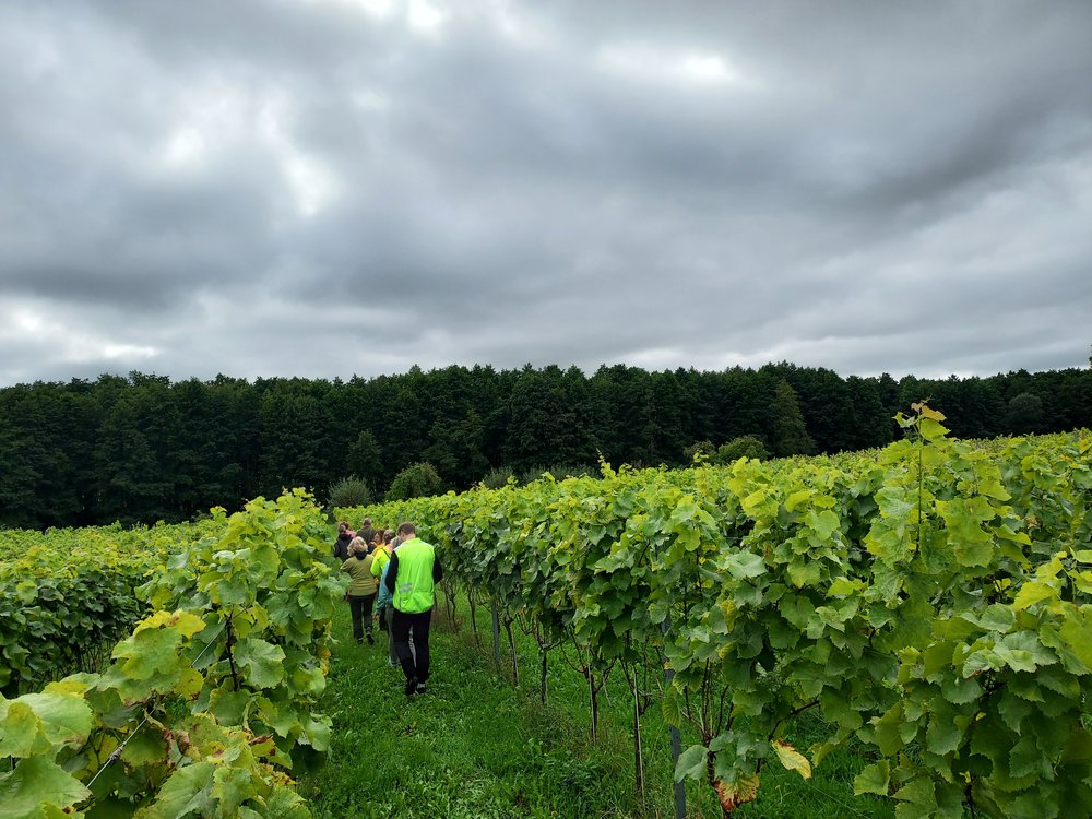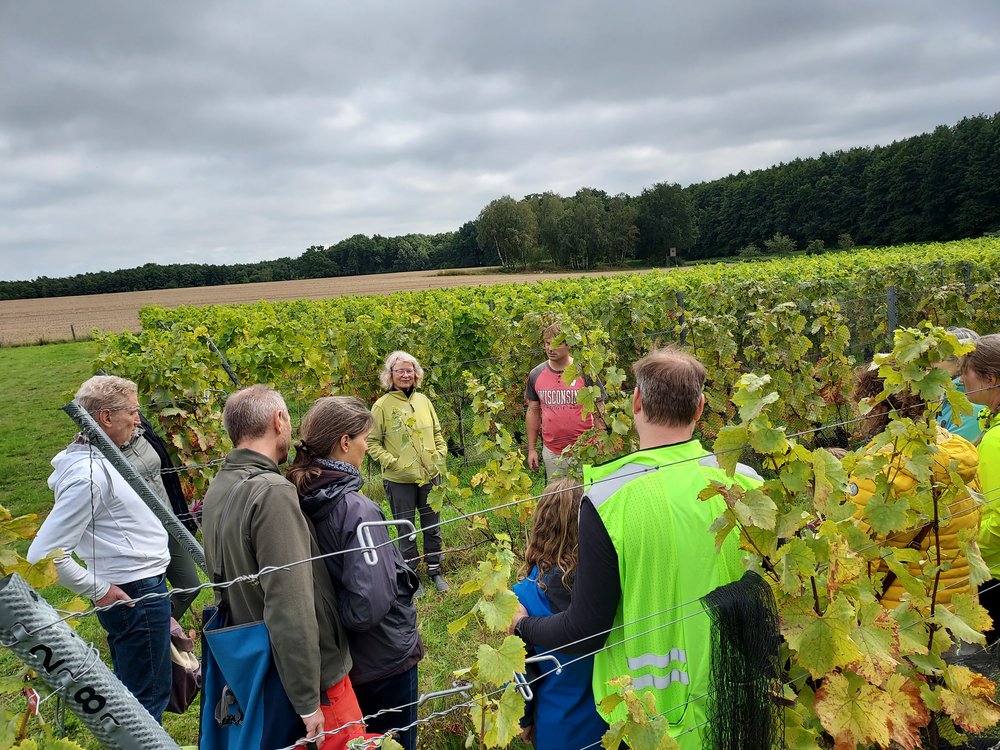 Dann ging es weiter zum Weinhof Wiecheln. Der Klimawandel und für Norddeutschland angepasste neue Sorten machen den Weinanbau im Landkreis Lüneburg möglich. Der Weinbauer Hannes Lecht informierte uns ausführlich über den ökologischen Weinanbau mit pilzresistenten Sorten. Zudem warfen wir einen Blick in die Kelterei und genossen eine kleine Weinprobe.