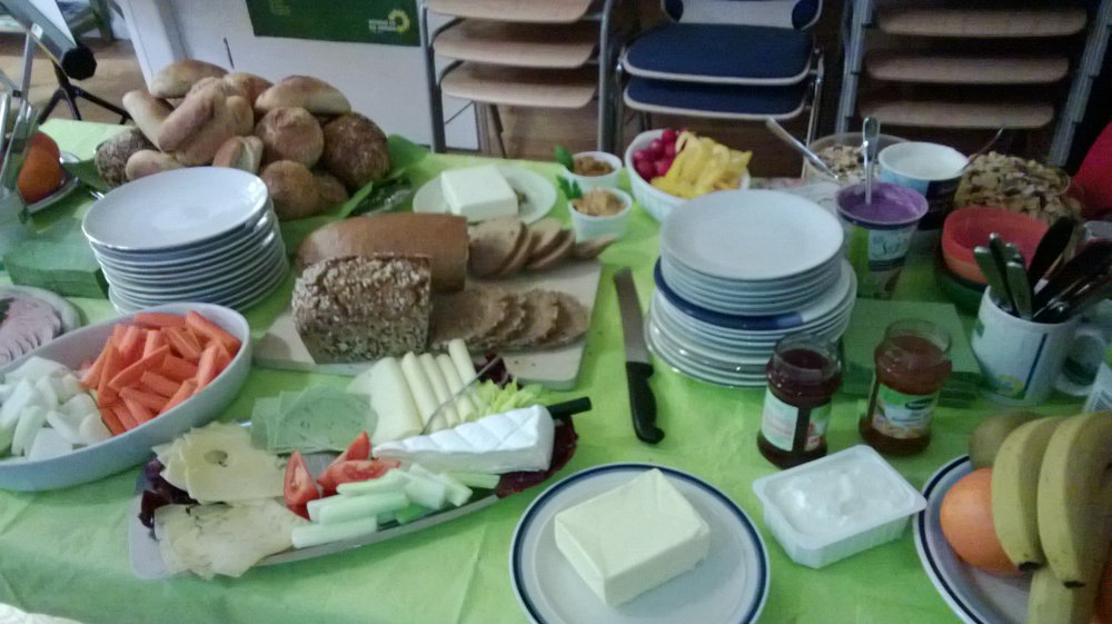 Zum gewohnten Frühstücksbuffet gibt's diesmal ofenfrische Franzbrötchen!