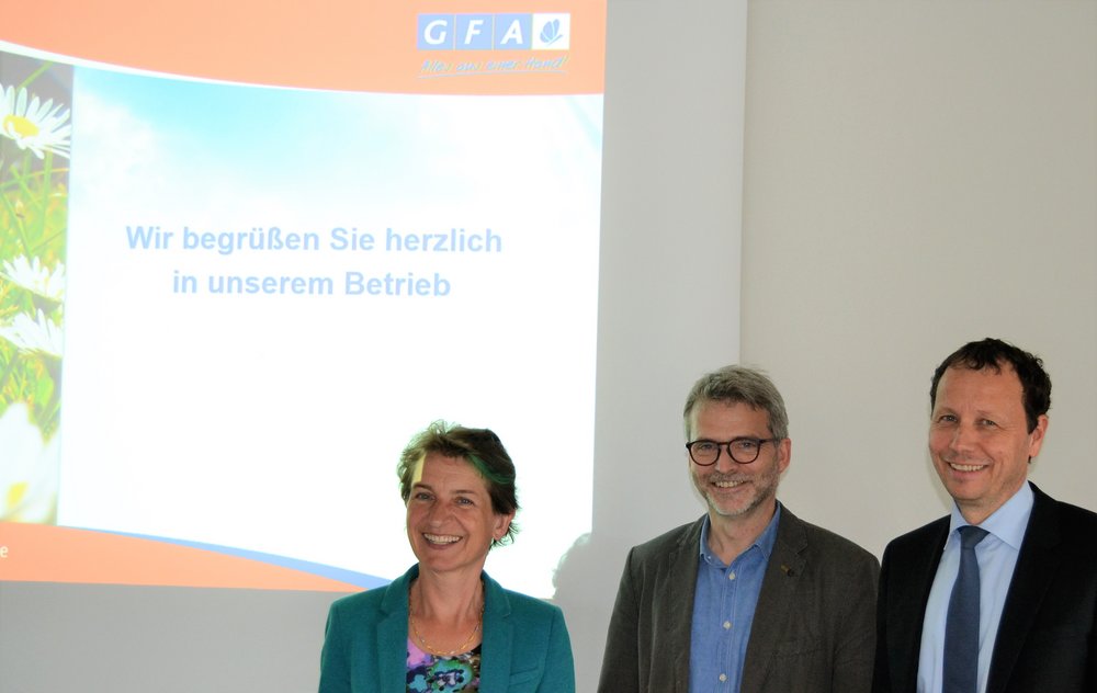 Es war ein beeindruckender Besuch, der doppelt so lange dauerte wie eingeplant. Auch zum Thema Eigenerzeugung von Strom und Wärme haben wir ausführlich beraten. Ca. 6 MW elektrische Leistung aus erneuerbaren Energien stehen hier zur Verfügung, leider nicht zur Eigenversorgung der GfA. Es wurde in unserem Gespräch deutlich, dass der Beitrag der erneuerbaren Energien zur Eigenversorgung und zum Klimaschutz mit der derzeitigen Politik der GroKo unrentabel und damit zunichte gemacht wird. Als Landrätin werde ich mich dafür einsetzen, dass die GfA das große Potential der erneuerbaren Energien nutzen und ausbauen kann.