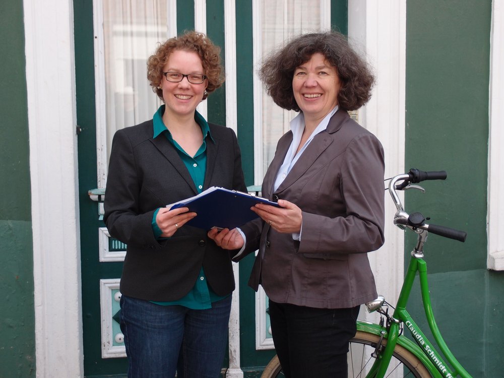 Einen großen Stapel Unterschriften überreichte Claudia Schmidt, Sprecherin der grünen Kreisverbands und Oberbürgermeisterkandidatin, heute der grünen Bundestagsabgeordneten Julia Verlinden.
